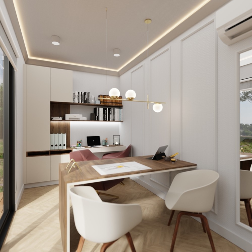 The bedrooms are intelligently placed on opposite sides of the house, offering privacy and maximum comfort. Each bedroom is designed to maximize storage space and natural light, with large windows and creative organizational solutions.