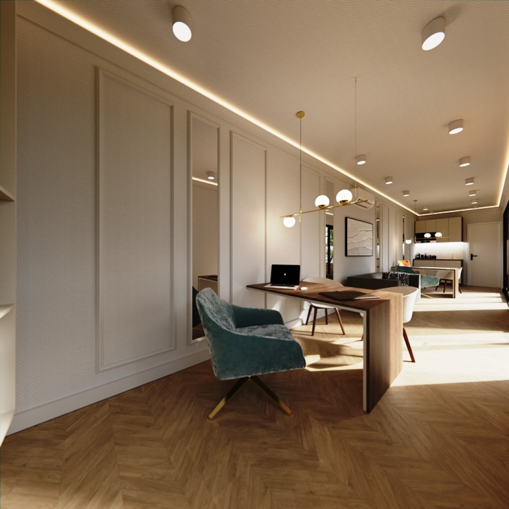 Natural light floods the interior through our big windows, creating a bright and inviting atmosphere that promotes well-being and productivity. Soft, diffused lighting complements the daylight, creating a warm ambiance conducive to creativity and focus.